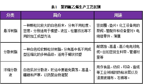 表1  聚四氟乙烯生產(chǎn)工藝區(qū)別